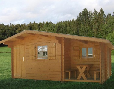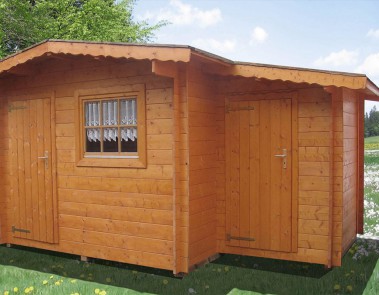 BlockhausBlockhaus mit seitlichem Geräteanbau